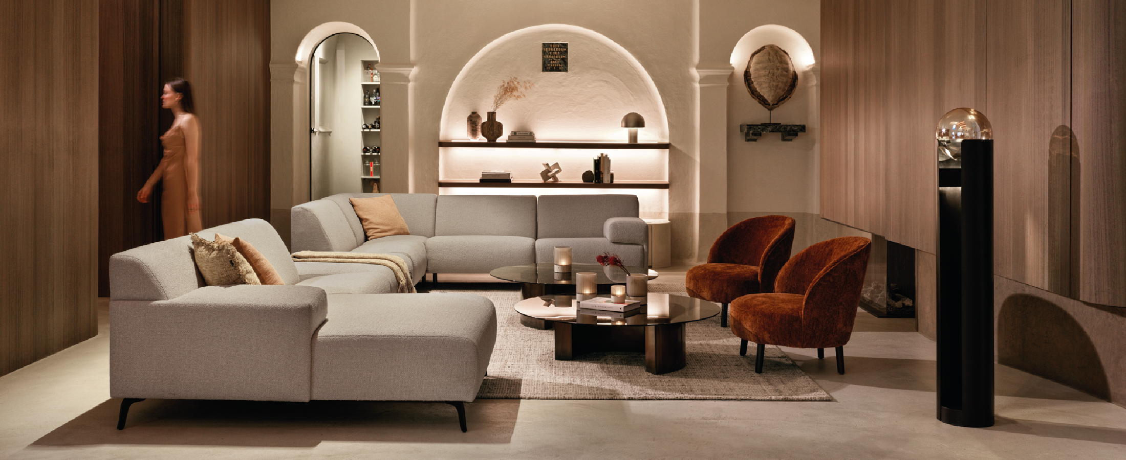 Canapé 2 places en tissu sable | Dôme Deco Curve