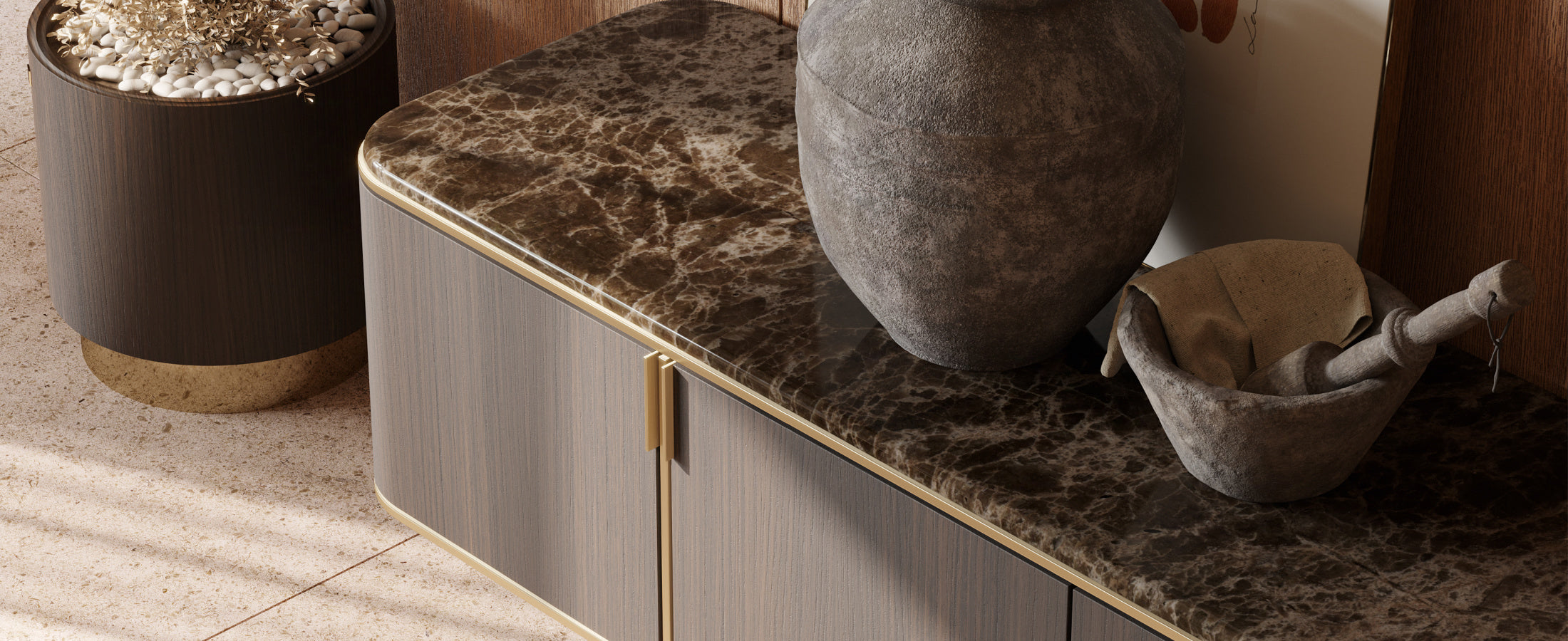 Meuble TV en marbre blanc et manguier | Vical Cenves