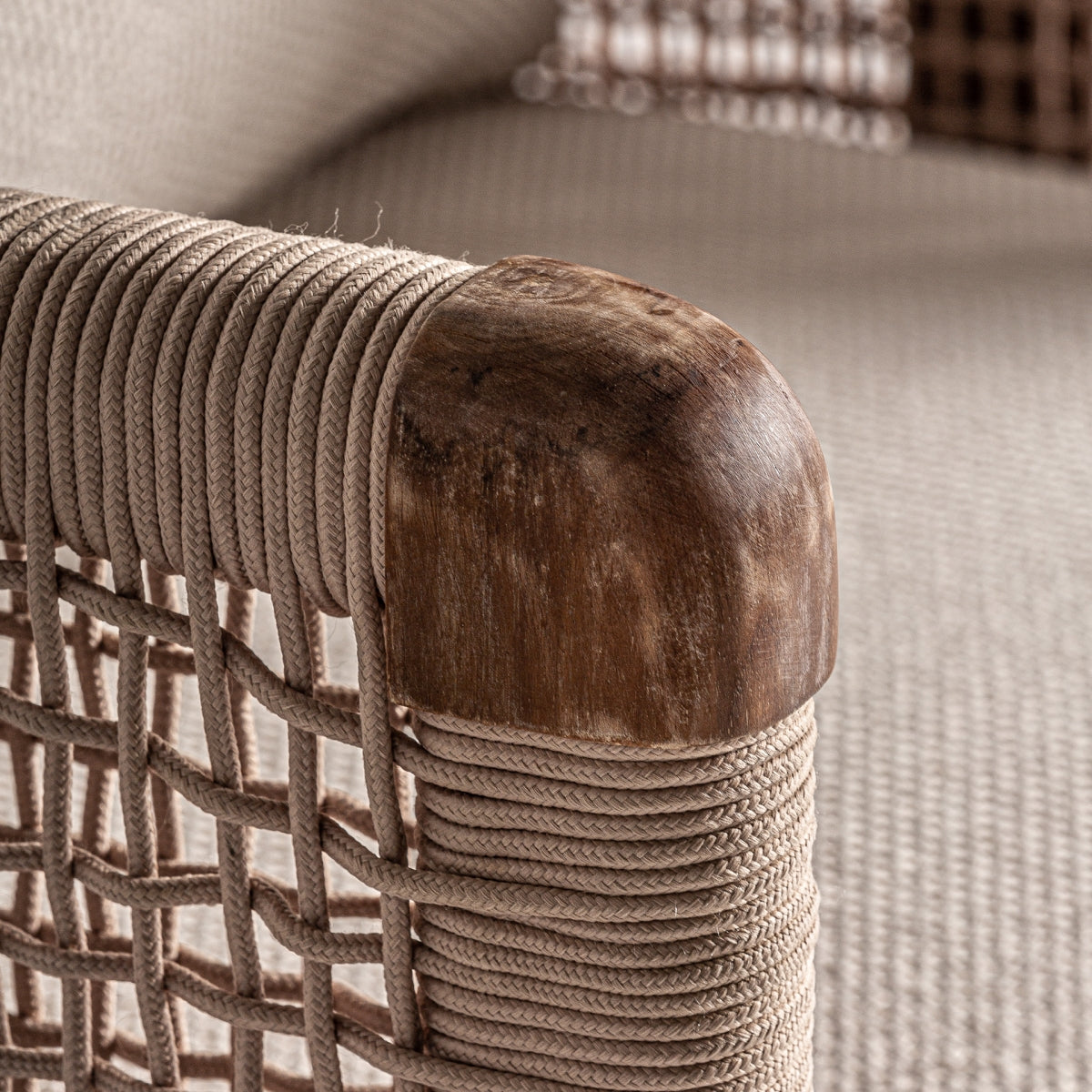 Experience the ultimate in comfort and elegance with the Trena outdoor sofa. Designed for lovers of sophisticated design and luxurious relaxation, this armchair is a perfect addition to your outdoor space. Trena is made with a teak frame and beige waterproof fabric, ensuring both comfort and longevity.