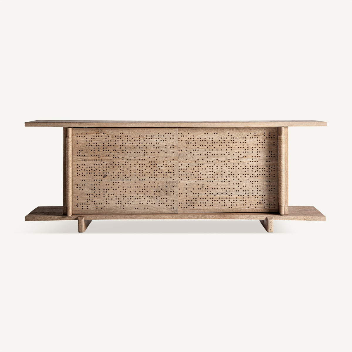 Pensé pour conjuguer fonctionnalité et esthétisme, ce buffet présente des portes à motifs gaufrés qui apportent du relief et une profondeur visuelle saisissante.