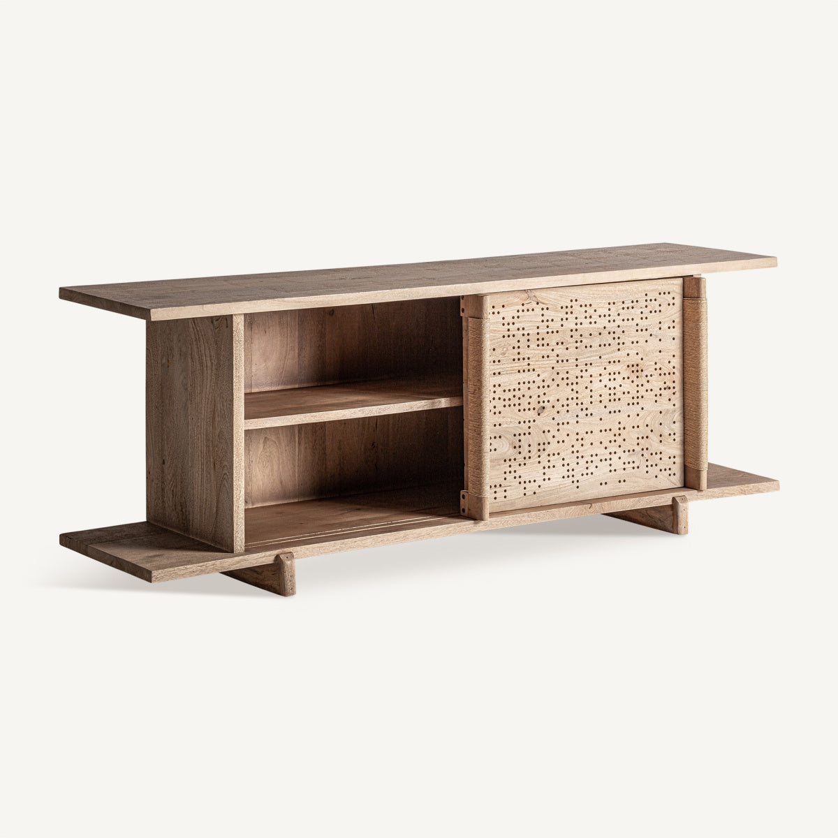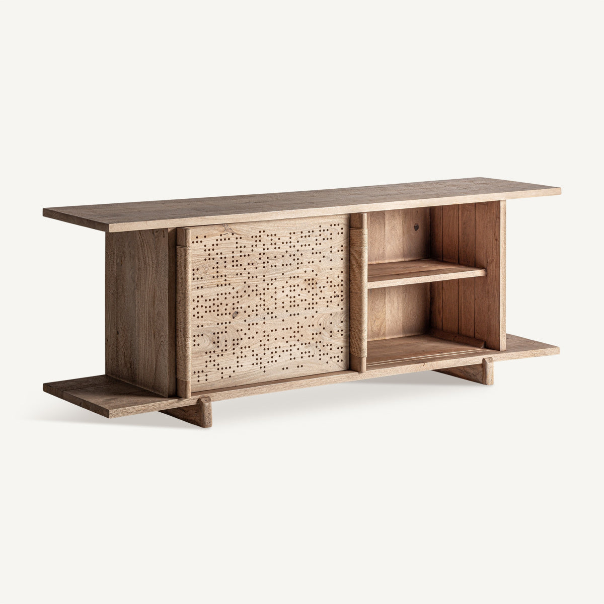 Le buffet en bois de manguier VICAL Jacquard s’impose comme une pièce maîtresse dans tout projet d’aménagement haut de gamme. Avec son design structuré, son revêtement textile effet jacquard et sa silhouette graphique, il incarne une nouvelle vision du mobilier décoratif, entre sophistication artisanale et rigueur contemporaine.