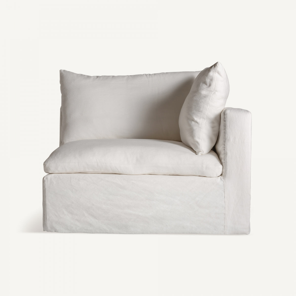 Ce canapé en lin blanc de Vical Agde apportera une touche luxueuse à votre salon. Avec une assise pour trois personnes, il offre un confort supérieur grâce à son revêtement déhoussable, vous permettant de le nettoyer facilement. Le mélange parfait d'élégance et de praticité.